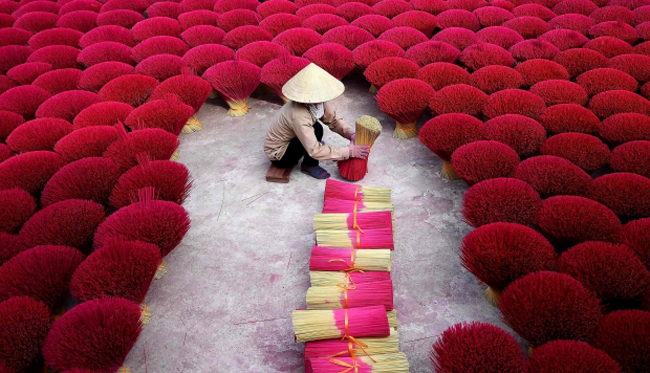 មិត្តអ្នកស្តាប់ឈ្មោះ មុនីរិធ្ធី មកពីរាជធានីភ្នំពេញបានសំដែងនូវបំណងចង់ឲ្យកម្មវិធីជួយឧទ្ទេសនាមអំពីភូមិមុខរបរប្រពៃណីធ្វើជើងធូប Quang Phu Cau នៅទីក្រុងហាណូយ។ មិត្តអ្នកស្ដាប់ជាទីរាប់អាន! ភូមិមុខរបរប្រពៃណីធ្វើជើងធូប Quang Phu Cau ស្ថិតនៅជាយផ្លូវជាតិលេខ ២១B ស្រុក Ung Hoa រដ្ឋធានីហាណូយ ដែលត្រូវបានប្រសូត្រឡើងក្នុងរយៈពេលជាង ១០០ ឆ្នាំកន្លងទៅ ហើយបានក្លាយទៅជាភូមិរបរប្រពៃណីធ្វើជើងធូបតែមួយគត់នៅរដ្ឋធានីហាណូយផងដែរ។ វត្ថុធាតុដើមសម្រាប់ធ្វើជើងធូបគឺដើមឫស្សី។ ជើងធូបក្រោយពីត្រូវបានបំបែកជាជំរៀកៗ ហើយចងជាបាច់និមួយៗទើបនឹងយកទៅជ្រលក់ពណ៌ក្រហមឬពណ៌ ផ្សេងៗទៀត បន្ទាប់មកយកទៅហាលថ្ងទៀតផង។ ការងារធ្វើធូបគឺជាការងារដែលមានស្ថិរភាព ហើយប្រាក់ខែត្រូវបានបើកជូនតាមថ្ងៃធ្វើការដោយមានការកំណត់ចំនួនផលិតផល ហេតុដូច្នេះគ្រប់គ្រួសារនៅទីនេះមានប្រាក់ចំណូលជាទៀងទាត់ ហើយក្លាយទៅការងារដែលផ្សារភ្ជាប់ជាមួយជីវិតរបស់ប្រជាជននៅទីនេះផងដែរ។ មិនត្រឹមតែប៉ុណ្ណោះទេ ប្រជាជននៅទីនេះក៏ត្រូវបានអាជ្ញាធរមូលដ្ឋានជួយឧបត្ថម្ភឲ្យខ្ចីប្រាក់ដើម្បីវិនិយោគផលិតកម្ម និងពង្រីកមូលដ្ឋាន ក៏ដូចជាការផ្សព្វផ្សាយផលិតផល និងពាណិជ្ជសញ្ញានៅឯពិព័រណ៍ជាដើម ហេតុដូច្នេះកេរ្តិ៍ឈ្មោះរបស់ភូមិមុខរបរប្រពៃណី Quang Phu Cau កាន់តែល្បីល្បាញពីមួយថ្ងៃទៅមួយថ្ងៃ ព្រមទាំងក្លាយទៅជាផលិតផលដ៏ពិសេសសំរាប់មុខរបរប្រពៃណីរបស់ទីក្រុងហាណូយផងដែរ។
