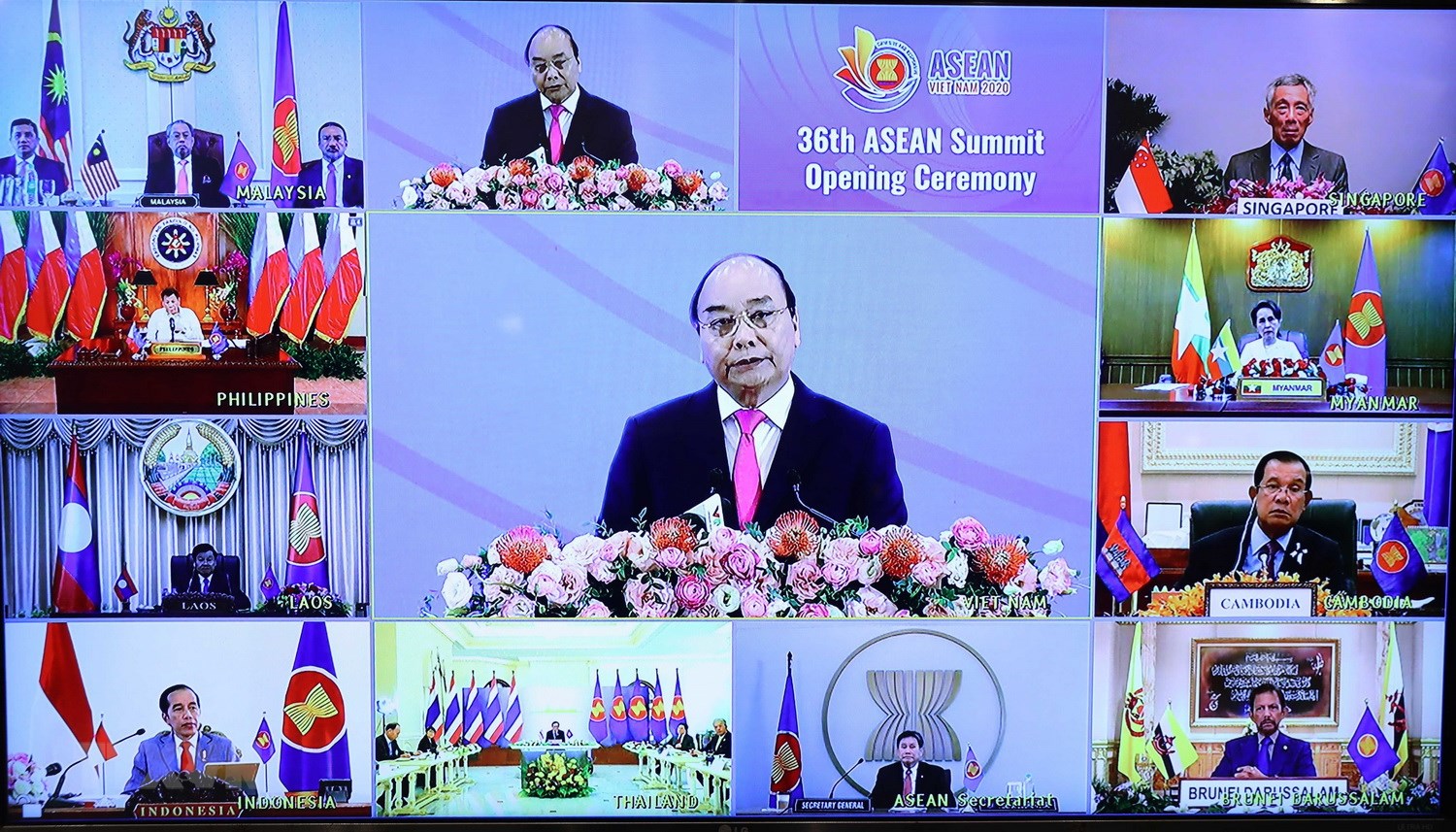 ទិដ្ឋភាពនៃកិច្ចប្រជុំកំពូលអាស៊ានលើកទី ៣៦ តាមប្រព័ន្ធវីដឹអូ (រូបថត៖ TTXVN) |
