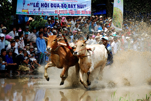 ពីប្រទេសកម្ពុជា មិត្ត វ៉ា សុនីតា មានគោលបំណងចង់ស្ដាប់ការឧទ្ទេសនាម អំពីពិធីបុណ្យប្រណាំងសត្វគោនៅវៀតណាម។ លោកអ្នកនាងជាទីមេត្រី! ពិធី បុណ្យប្រណាំងសត្វគោ Bay Nui នៅខេត្ត An Giang ភាគខាងត្បូងវៀតណាម ត្រូវបានរៀបចំឡើងជារៀងរាល់ឆ្នាំក្នុងឱកាសបុណ្យសែនដូនតាដែលប្រព្រឹត្តទៅចាប់ពីថ្ងៃទី៩ដល់ថ្ងៃទី១០ ខែ ១០ តាមច័ន្ទគតិ។ នេះជាទំនៀមទំលាប់វប្បធម៌ ប្រពៃណីដ៏វិសេសវិសាលរបស់ជនរួមជាតិខ្មែរនៅភាគខាងត្បូងវៀតណាម។ ចាប់ តាំងពីអតីតកាល ជនរួមជាតិខ្មែរភាគខាងត្បូងវៀតណាមសុទ្ធតែប្រកបរបរធ្វើ ស្រែ។ ពួកគេប្រើប្រាស់សត្វគោដើម្បីភ្ជួរដី ហេតុនេះហើយ សត្វគោត្រូវបាន ប្រជាកសិករថែទាំយ៉ាងហ្មត់ចត់ណាស់។ នាពេលធ្វើស្រែ ពួកគេតែងតែរៀប ចំការប្រណាំងសត្វគោ ហើយល្បែងនេះបានក្លាយទៅជាទំលាប់ជាបណ្ដើរៗ។ ចាប់តាំងពីនោះមក ការប្រណាំងសត្វគោបានក្លាយទៅជាពិធីបុណ្យដ៏ពិសេស ដោយឡែករបស់ជនជាតិខ្មែរ Bay Nui ខេត្ត An Giang នាពេលបុណ្យសែន ដូនតាមកដល់ម្ដងៗ។ ចាប់តាំងពីឆ្នាំ១៩៩២កន្លងមក ពិធីបុណ្យប្រណាំងសត្វគោ ត្រូវបានរៀបចំឡើងដោយទ្រង់ទ្រាយធំ និងមានលក្ខណៈជំនាញជាងមុន ហេតុ ដូច្នេះហើយ ប្រជាកសិករក៏យកចិត្តទុកដាក់ជាច្រើនដល់ការជ្រើសរើសនិងថែទាំ សត្វគោដើម្បីយក មកប្រកួតដែរ។ តាមការកំណត់ប្រណាំងគោនោះ បេក្ខជន ម្នាក់ៗនឹងបញ្ជាសត្វគោមួយគូដើម្បីចូលរួមប្រណាំង។ បេក្ខជន២នាក់នឹងប្រកួត គ្នាផ្ទាល់ដើម្បីជ្រើសរើសអ្នកឈ្នះឈានដល់វគ្គប្រកួតជាបន្ត។ ជារៀងរាល់ឆ្នាំ ពិធីបុណ្យប្រណាំងសត្វគោ Bay Nui ជានិច្ចកាលទាក់ទាញការចូលរួមទស្សនា និងគាំទ្ររបស់មនុស្សយ៉ាងច្រើនកុះករ។ សត្វគោណាដែលដណ្ដើមបានពាន រង្វាន់ខ្ពស់ក្នុងការប្រណាំង មិនត្រឹមតែនាំមកនូវមោទនភាពសម្រាប់ម្ចាស់គោ ប៉ុណ្ណោះទេ ថែមទាំងនាំមកនូវសេចក្ដីសោមនស្សរីករាយនិងសេចក្ដីសង្ឃឹមអំពី រដូវអំណោយផលសម្រាប់ភូមិស្រុកទាំងមូលទៀតផង។
