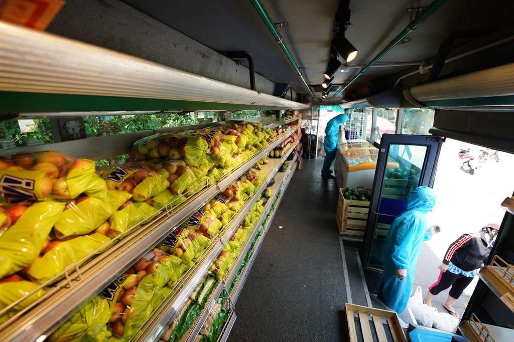 លោកអ្នកនាងនិងប្រិយមិត្តជាទីមេត្រី! “ផ្សារទំនើបមីនី” នេះ ស្ថិតនៅលើរថយន្តក្រុង ៥២ កៅអីដែលលក់អាហារស្រស់ៗនិងកែច្នៃជាច្រើនមុខ រួមជាមួយទំនិញប្រើប្រាស់ពេញនិយមនានា ដូចជាបន្លែ ផ្លែឈើ សាច់ ទឹកដោះ ស៊ុត គ្រឿងទេស អង្ករ និងផលិតផលអនាម័យ ជាដើម ដែលត្រូវបានរៀបចំតាមបែបវិទ្យាសាស្ត្រដើម្បីឲ្យអតិថិជនងាយស្រួលជ្រើសរើស។ ជាពិសេស មុខទំនិញទាំងអស់ត្រូវបានលក់ក្នុងតម្លៃអនុគ្រោះឬក្នុងតម្លៃស្ថិរភាពនៃទីផ្សារ។ ប្រជាជនពាក់ម៉ាស់ តម្រង់ជួរ រក្សាគម្លាតសុវត្ថិភាព រង់ចាំវាស់សីតុណ្ហភាពរាងកាយរួចទើបឡើងទិញទំនិញបាន។ លើកនីមួយៗត្រឹមតែអនុញ្ញាតឲ្យមនុស្សប្រមាណ២ដល់៣នាក់ប៉ុណ្ណោះឡើងរថយន្តពីទ្វារខាងមុខហើយចុះពីទ្វារខាងក្រោយ។ ជារៀងរាល់ថ្ងៃ លំហលើរថយន្តត្រូវបានបាញ់ថ្នាំសម្លាប់មេរោគ ៣ ដង ដើម្បីជួយប្រជាជននឹងនរចិត្តទិញទំនិញ។ នេះជាគំនិតផ្ដួចផ្ដើមដែលត្រូវបានប្រព័ន្ធហាងលក់អាហារ Grove Fresh សហការជាមួយមន្ទីរឧស្សាហកម្មនិងពាណិជ្ជកម្មទីក្រុងហូជីមិញរៀបចំឡើងដើម្បីផ្គត់ផ្គង់អាហារនិងទំនិញចាំបាច់ដល់ទីប្រជុំជនដែលកំពុងខ្វះខាតប្រភពទំនិញ។ ជាមធ្យម “ផ្សារទំនើបមីនី” ចល័តនីមួយៗ អាចបម្រើអតិថិជនប្រមាណ២០០នាក់ក្នុងមួយថ្ងៃ។