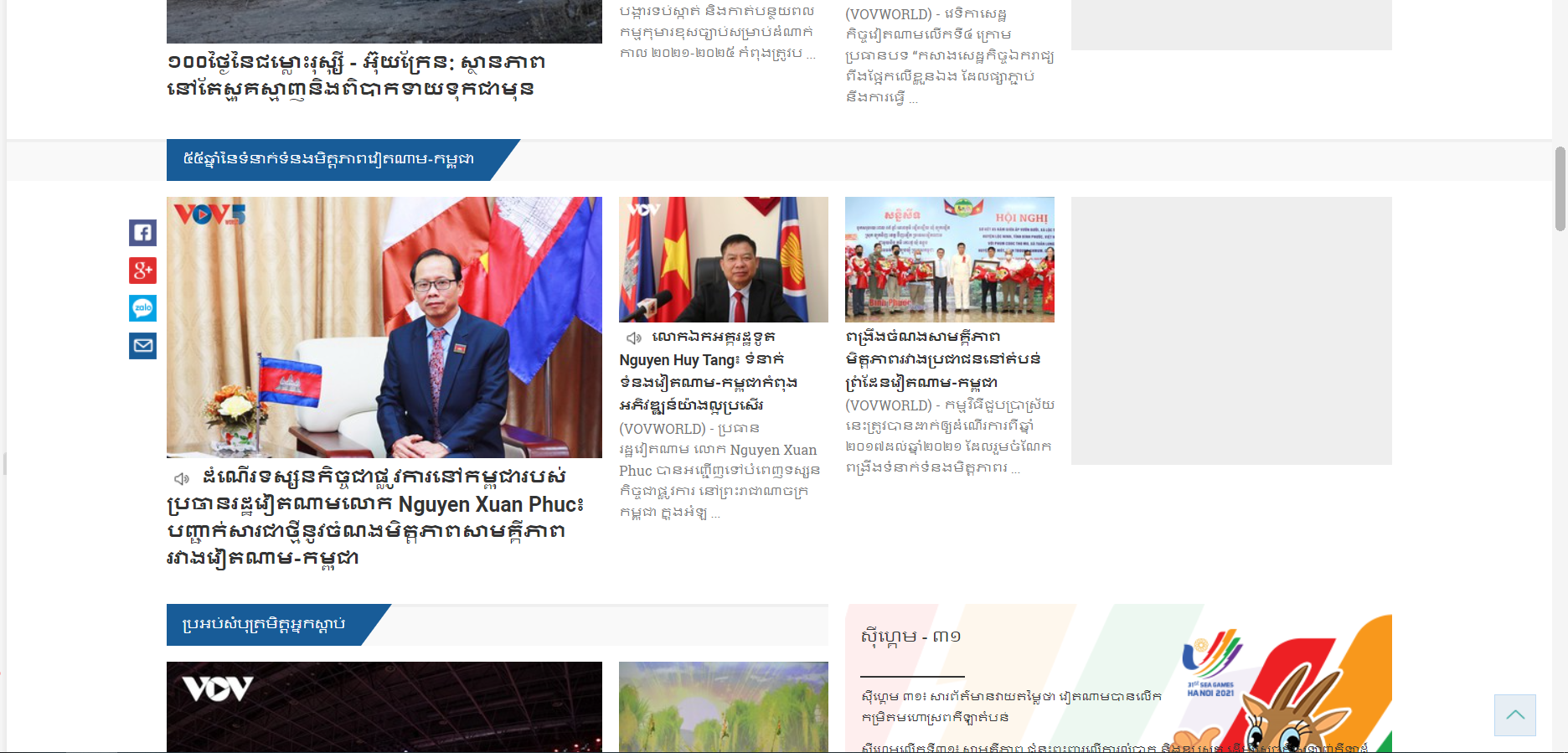 នាទីថ្មីដោយមានចំណងជើងថា “៥៥ឆ្នាំនៃទំនាក់ទំនងមិត្តភាពវៀតណាម-កម្ពុជា” នៅលើគេហទំព័រ vovworld.vn។