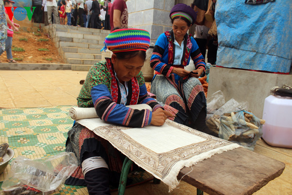 | នៅទីនេះ ភ្ញៀវទេសចរណ៍នឹងបានឃើញបណ្ដានារីជនជាតិ Dao និង Mong ប៉ាក់ដោយដៃ។ នារីទាំងនេះដូចជាសិល្បការិនីដែរដោយសារគេចេះគូរចេះសូនរូបចេះប៉ាក់ដោយដៃនិងចេះកាត់ដេរ។ |