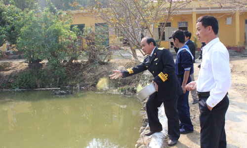 បានទៅសាក​សួរសុខទុក្ខនិងជូនអំណោយដល់កម្មាភិបាលយុទ្ធជននៅកោះ Tra Ban