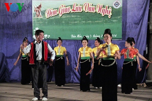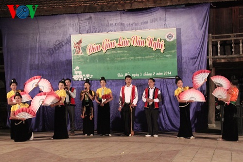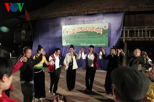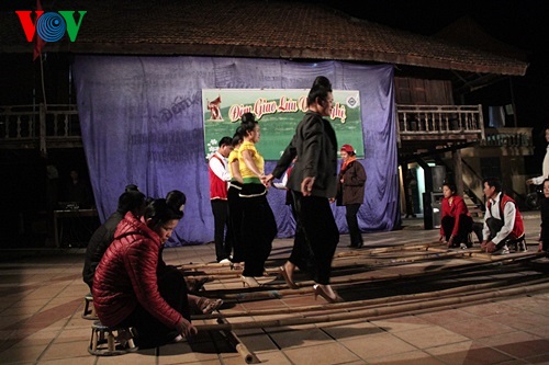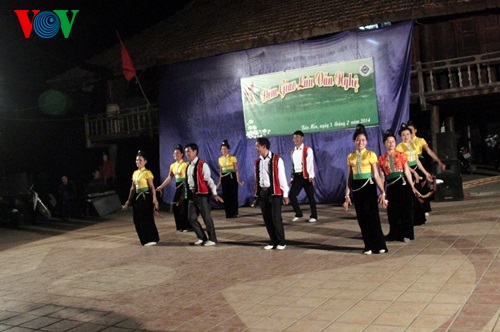យុវជនយុវនារីជាជនជាតិ Thai នៅភូមិ Men (ខេត្ត Dien Bien) កំពុងសម្តែងរបាំប្រពៃណី។