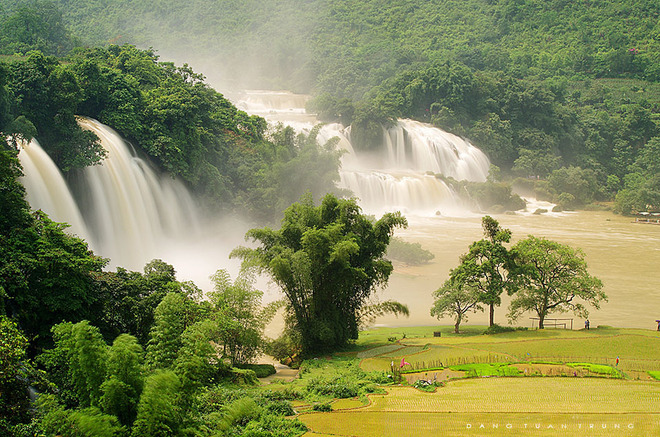 ទឹកជ្រោះ Ban Gioc នៅខេត្ត Cao Bang ត្រូវបានប្រសិទ្ធិនាមជាទឹកជ្រោះស្អាតបំផុតនៅវៀតណាម។