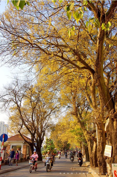 វិថី Yen Phu នៅរដ្ឋធានីហាណូយក្នុងរសៀល១នាចុងសិស៌ររដូវ។