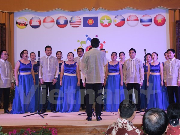 នាយប់ថ្ងៃទី ១៦ វិច្ឆិកា ឈុតសម្តែងច្រៀង acapella របស់សិល្បៈករសិល្បៈការិនីមកពី ហ្វីលីពីនបានប្រព្រឹត្តទៅនៅទិវាបុណ្យប្រទេសអាស៊ាននានាឆ្នាំ ២០១៥ ដែលត្រូវបាន រៀបចំឡើងនៅស្ថានទូតឥណ្ឌូណេស៊ីប្រចាំនៅសឹង្ហបុរី។