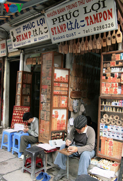 លើវិថី Hang Quat ទីក្រុងហាណូយនៅមានហាងធ្វើនិងលក់ពុម្ពនំពាជាច្រើន។