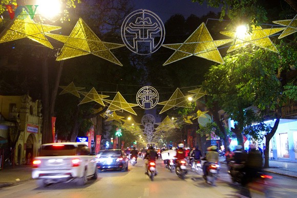 វិថី Hang Bai ត្រូវបានតុបតែងដោយផ្កាយផ្លេកៗ។