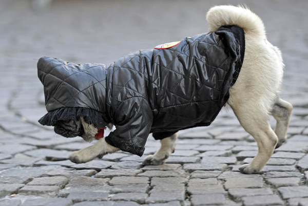 3. សត្វឆ្កែមួយក្បាលដែលពាក់អាវរងារកំពុងដើរកំសាន្តលើវិថីនៅទីក្រុង Gelsenkirchen អាលឹ្លម៉ង។ (រូបថត: AP)