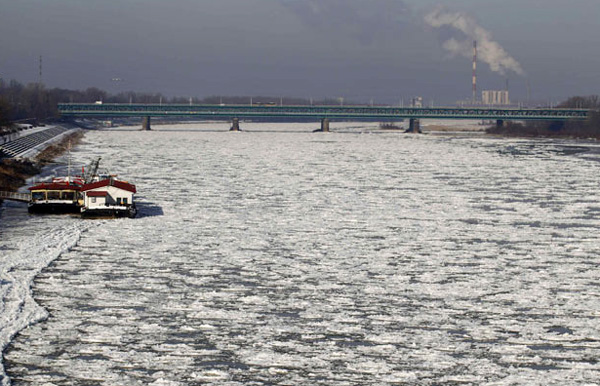 8. ឆ្ទាំងទឹកកកអណ្តែតពេញទន្លេ Vistula ជិតទីក្រុងបុរាណ វ៉ាសូវី ប៉ូឡូញ់។