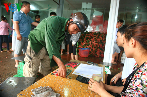 ប្រជាកសិករលក់ផ្លែគូលែនឲ្យអាជីវករនានានៅទីរួមស្រុក Kim Kep ស្រុក Luc Ngan ខេត្ត Bac Giang។