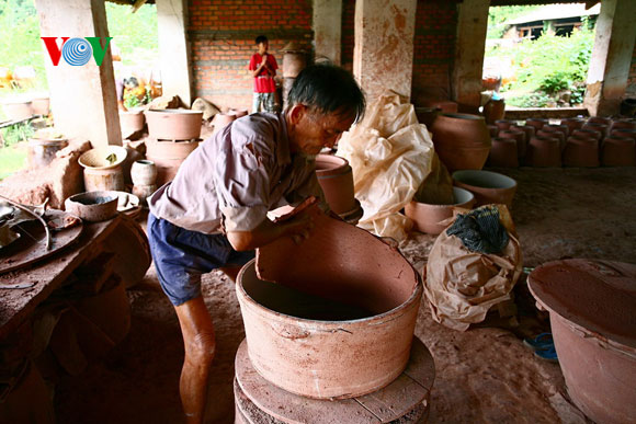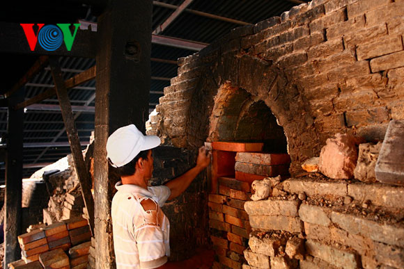 | ម្ចាស់ឡគ្រឿងភាជន៍ Dai Hung លោក Bui Van Giang កំពុងត្រូតពិនិត្យ ជាងកំពុងធ្វើផលិតផល។ |