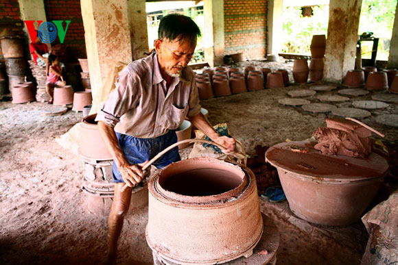 | លោក Ho Van Lon មានអាយុ ៧១ ឆ្នាំ កំពុងធ្វើពាងមួយគ្រឿង។ |