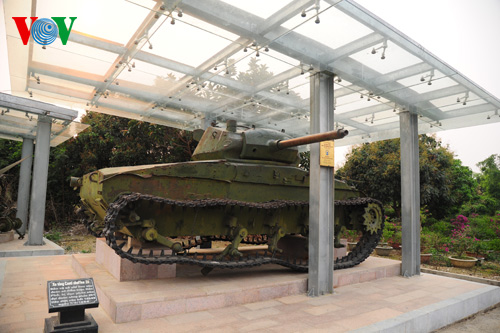 | រថក្រោះ Chaffee 24 ដែលបានការពារព្រលានយន្តហោះ Muong Thanh ស្ថិតនៅក្នុង វាលស្រែខៀវស្រស់។ |