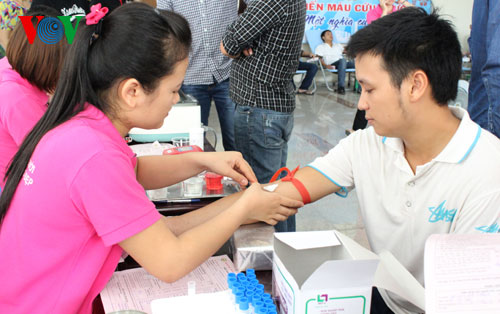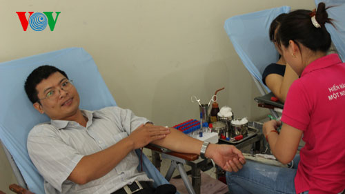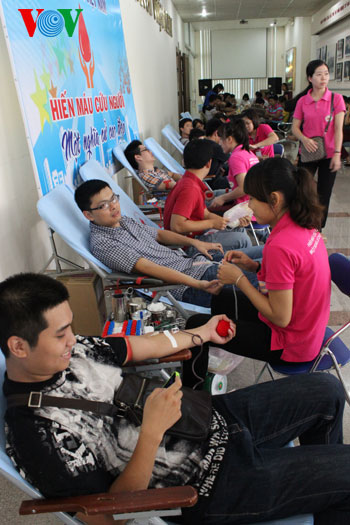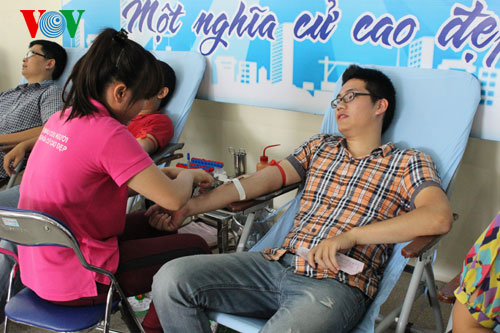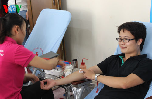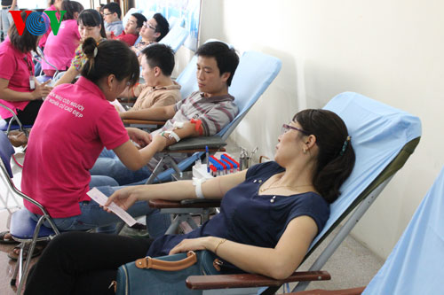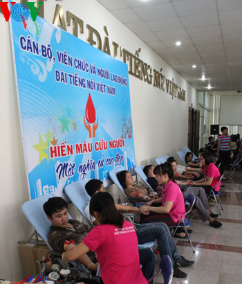 បរិច្ចាគឈាមឆ្នាំ ២០១៣” នៅមណ្ឌលផ្សាយសម្លេងជាតិ ទីក្រុងហាណូយ។ នេះគឺជាឆ្នាំទី ៤ ដែលវិទ្យុសម្លេងវៀតណាមបានរៀបចំសកម្មភាពដ៏មានអត្ថន័យនេះ។