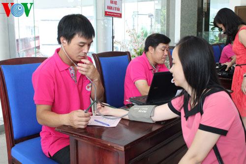 | នាព្រឹកថ្ងៃទី ១៤ សីហា កម្មាភិបាល អ្នកយកព័ត៌មាន អ្នកនិពន្ធ អ្នកបច្ចេកទេស នៃវិទ្យុសម្លេងវៀត ណាមចំនួន ៣ រយ នាក់ បានចូលរួមទិវាបុណ្យបរិច្ចាគឈាម។ |