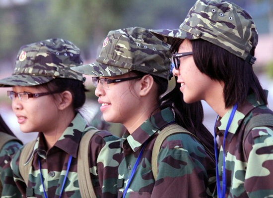 បណ្ដាសិក្ខាកាមនារីជ្រួលជ្រាល់ចូលរួមវគ្គសិក្សាយោធា។