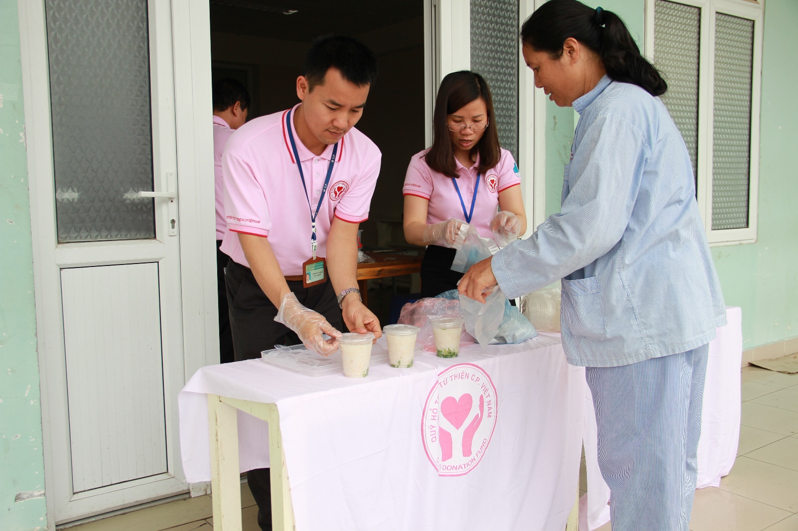 នាម៉ោង១១ ថ្ងៃត្រង់ នៅមាត់ទ្វារកាំងទីន មន្ទីរពេទ្យមហារីក Tan Trieu លោកស្រី Tong Thi ThuHa អាយុ ៣៦ឆ្នាំនៅខេត្ត Phu Tho រួមជាមួយកូនស្រីអាយុ១៣ឆ្នាំ ក្នុងសម្លៀកបំពាក់អ្នកជំងឺ បានមានភាពញញឹមក្នុងពេលដែលទទួលចានបរបរពីបុគ្គលិកនៃក្រុមហ៊ុន Charoen Pokphand Group (CP) ប្រគល់ជុន។ លោកស្រី Ha បានអោយដឹងថា៖