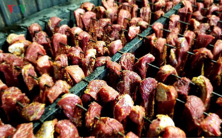 ក្រោយពីប្រឡាក់ជាមួយគ្រឿងទេសក្នុងរយៈពេល២ម៉ោង សាច់គោត្រូវបាន យកទៅឆ្នើរនៅលើឡធ្យូងថ្ម ក្នុងរយៈពេលពី១០ដល់១២ម៉ោងទៀត។ ត្រូវប្រើ ភ្លើងយ៉ាងម៉េច ដើម្បីធានាឲ្យសាច់ស្ងួតផង ប៉ុន្តែនៅទន់និងឈ្ងុយឆ្ងាញ់ ទៀតផង។