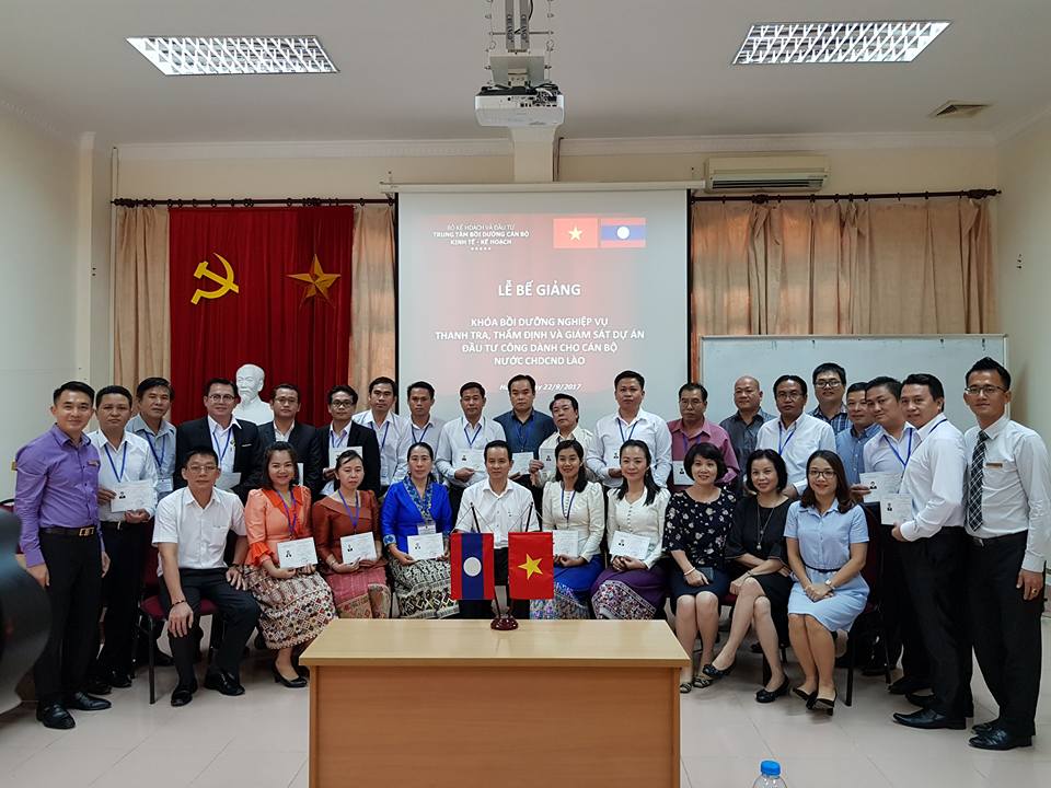 “ វគ្គបំប៉ន់ជំនាញអធិការកិច្ច វាយតំលៃ និងឃ្លាំមើលគំរោងការណ៍វិនិយោគសាធារណះសំរាប់កម្មាភិ បាល ឡាវ”ដោយក្រសួងផែនការ វិនិយោគវៀតណាមរៀបចំឡើងក្នុងរយៈពេលជាងមួយខែ បានសម្រេចប្រកបដោយជោគជ័យ។ក្រៅពីបណ្ដាទ្រឹស្តីជំនាញ បណ្ដាកម្មាភិបាលឡាវក៏បានទៅស្រាវជ្រាវជាក់ស្ដែងនៅខេត្តក្រុងមួយចំនួន។វគ្គសិក្សានេះបានបន្សល់ទុកនូវចំណាប់អារម្មណ៍ជាច្រើនចំពោះសិក្ខាកាមឡាវនានា។
