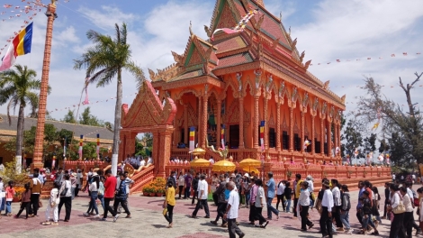 (VOVWORLD) - 크메르족 사람들은 주로 남방 불교 신자이기 때문에 크메르족 주민들이 많이 사는 곳에는 주민들이 편리하게 경전을 읽고 불공을 드릴 수 있는 절이 있다. 크메르 사원은 종교 활동의 장소일 뿐만 아니라 전통 문화를 보존하고 교류하는 중요한 곳이기도 하다. 따라서 사원은 크메르족 공동체의 문화 생활에서 매우 중요한 위치를 차지하고 있다.