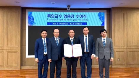 (VOVWORLD) - 6월 17일 베트남 수리공학대학교의 총장이자 베트남 수리공학 분야를 대표하는 전문가 중 한 명인 응우옌 쭝 비엣(Nguyễn Trung Việt) 교수가 한국 계명대학교로부터 명예교수로 임명되었다. 계명대학교는 응우옌 쭝 비엣 교수의 수리공학 분야에 대한 헌신과 탁월한 공로를 인정해 이번 임명을 결정했다.