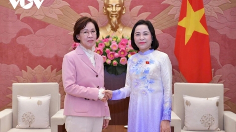 (VOVWORLD) - 6월 23일 오전 하노이 국회청사에서 응우옌 티 타인(Nguyễn Thị Thanh) 국회부의장은 베트남을 방문 중인 이인선 한국 국회 여성가족위원회 위원장과 여성가족위원회 위원들을 접견했다.