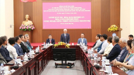 (VOVWORLD) - 6월 27일 오후 하노이에서 중앙 베트남 조국전선위원회 도 반 찌엔(Đỗ Văn Chiến) 위원장은 베트남을 방문 중인 ‘베트남을 사랑하는 사람들의 모임(VESAMO·베사모)’ 대표단과 면담을 가졌다. 대표단은 장호익 베사모 회장(동원그룹 부회장 겸 부산 상공회의소 부회장)이 이끌었다.