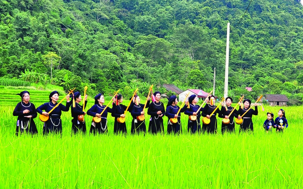 랑선은 고산 장터의 고장으로, 소박한 남색 전통의상의 옷자락이 어우러지고, 산속에 울려 퍼지는 감미로운 탠 노래의 고장이기도 합니다. 탠 노래는 따이(Tày)족과 눙(Nùng)족의 독특한 예술 형식으로, 깊은 영적인 의미를 담고 있으며, 평온하고 풍요로운 삶을 바라는 마음을 표현합니다. 탠 민속예술인들이 단띤 전통악기와 함께 노래를 부를 때면 마치 하늘과 땅, 사람과 그들의 꿈 이야기를 들려주는 듯합니다.