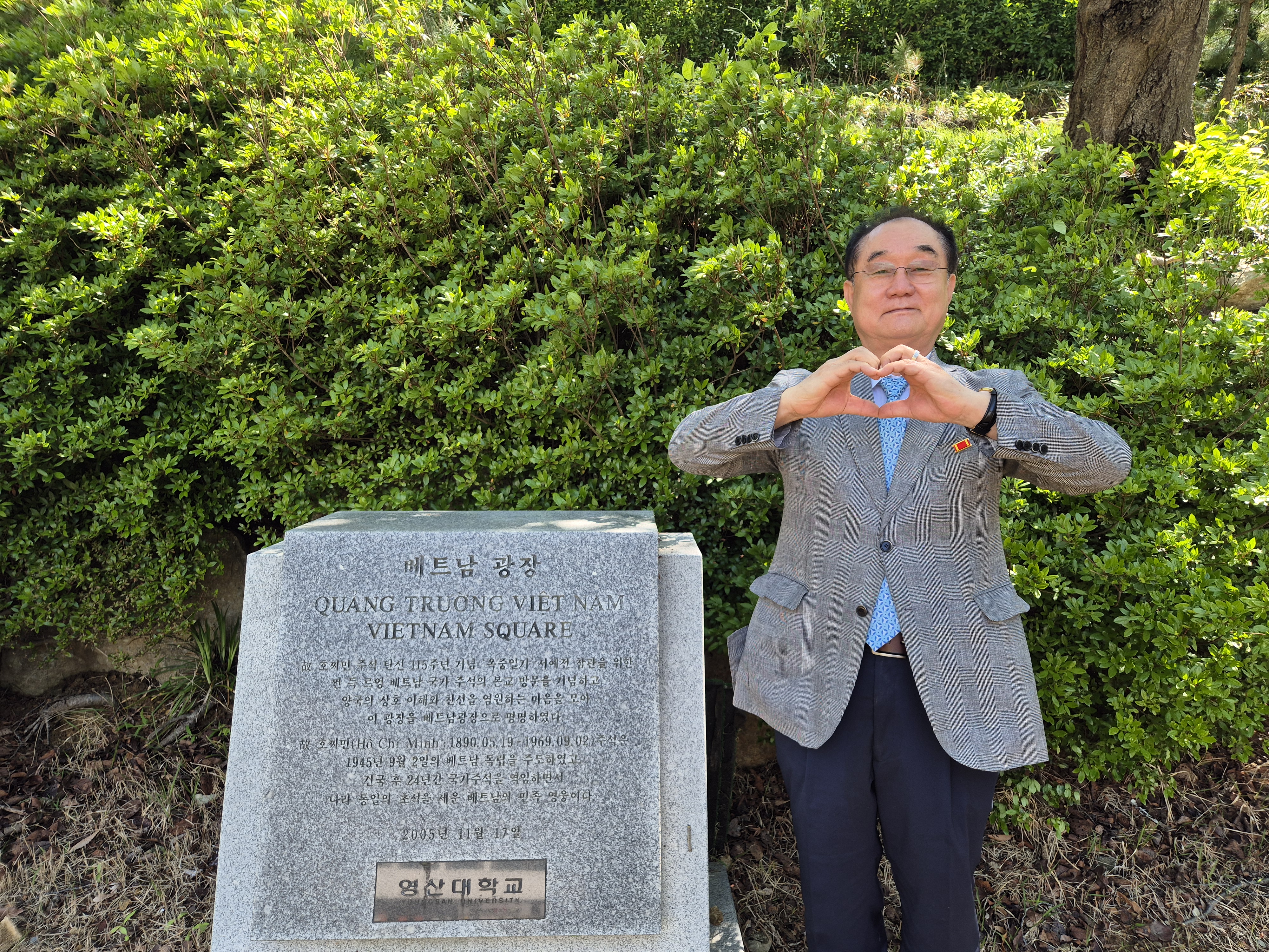 한국 영산 대학교 베트남 광장을 방문하는 안경환 교수 |