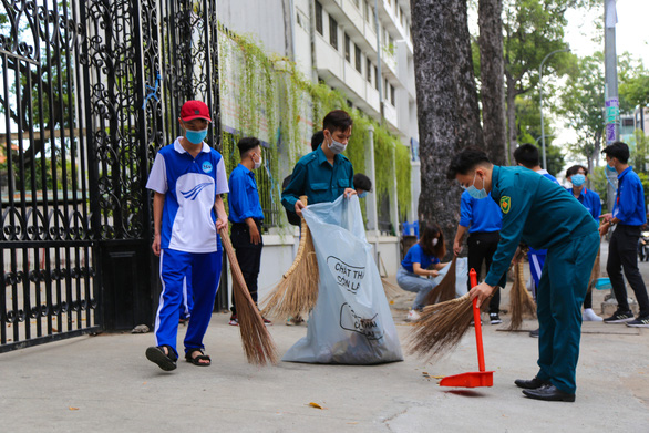 2021년 청년의 달을 시작하여 2월 28일 오전 도로를 청소하는 사이공 대학 대학생들의 모습