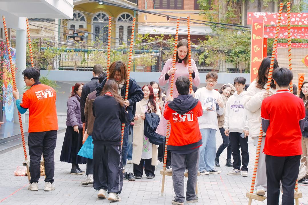 베트남 내 많은 외국인 유학생이 다니는 대학교에서도 외국인 대학생들이 베트남 설을 체험할 수 있기 위해 다양한 설 활동들이 마련되기도 했다. 그중에는 제야 제사, 세뱃돈 주기, 사찰 참배, 잉어 방생하기, 바인쯩과 조(giò) 만들기, 냄(nem) 만들기 등이 포함됐다. 이탈리아 대학생 로베르타(Roberta) 씨는 이러한 체험에 참여해서 기쁜 마음을 숨기지 못했다.