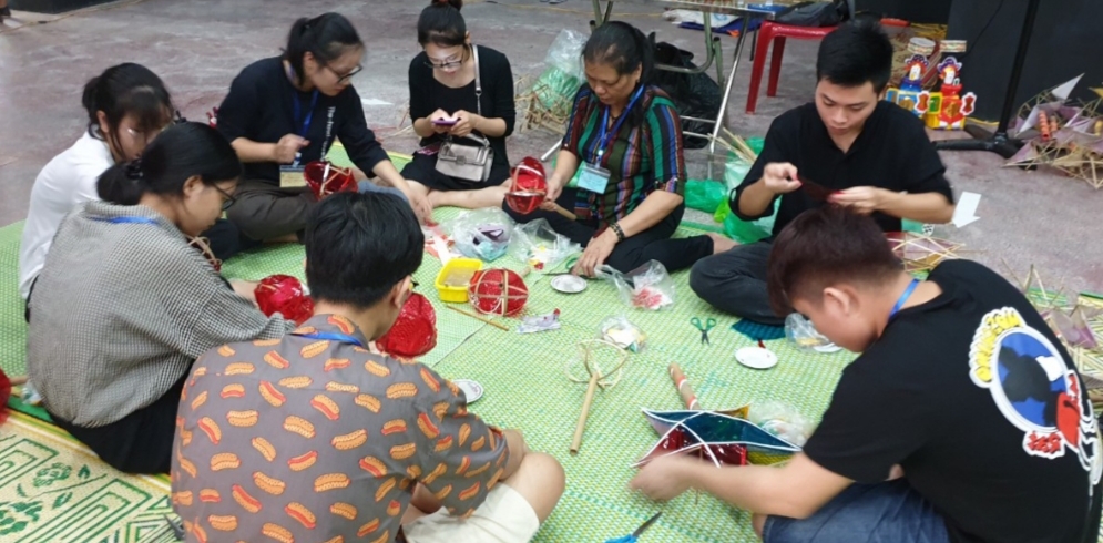 민족학박물관에서 연예인들이 어린이들에게 별등 만드는 법을 가르치고 있는 모습 |