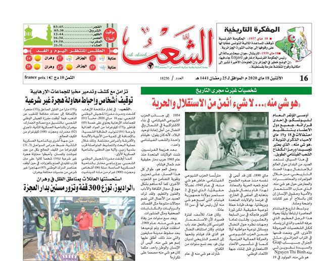 호찌민 주석을 찬양하는 기사들을 올린 알제리의 신문 [사진: Ngọc Thạch] |