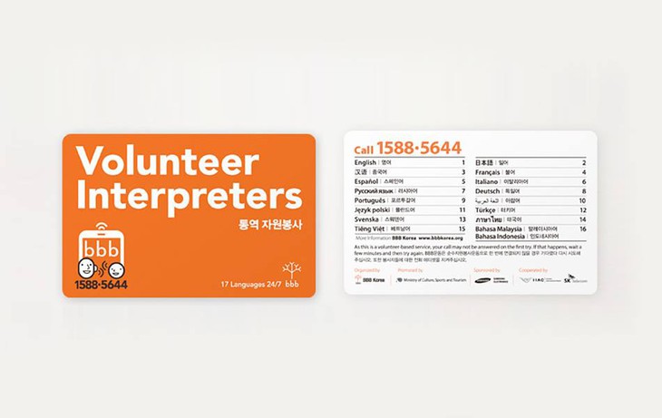혹시나 언어적인 통역 도움이 필요하시다면 1588-5644로 전화하시거나, 혹은 bbb korea 라는 어플리케이션을 다운받으시면 무료로 통역지원을 받으실 수 있습니다.
