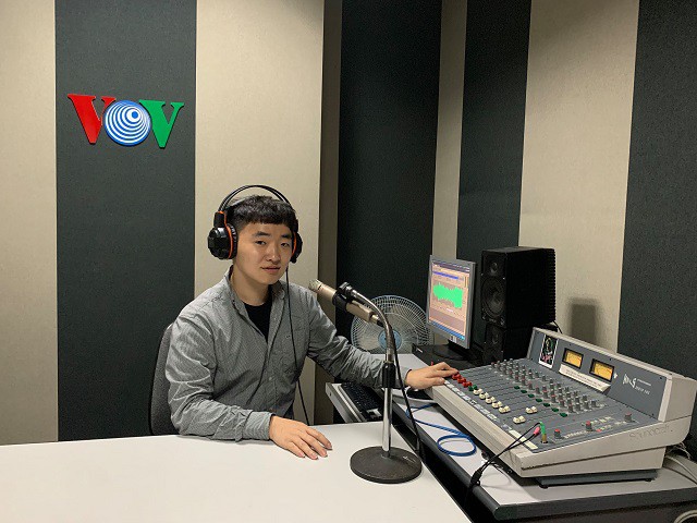 VOV5 스튜디오에서 작업중인 전형준 씨의 모습 |