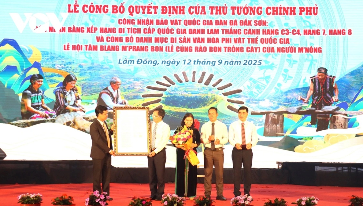 2025년 9월 12일, 팜 민 찐 총리는 닥선(Đắk Sơn) 석금을 국보로 지정했다. (사진: VOV) |