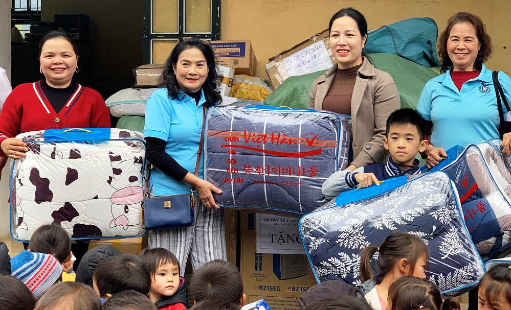 비가 와서 추운 날씨임에도 불구하고 이른 아침부터 숭도면 유치원의 선생들과 어린이들이 유치원 앞에 일찍 모여서 하노이에서 온 자원봉사단을 맞이했다. JEAN PIAGET 초등학교 팜 티 옌(Phạm Thị Yến) 총장은 고지대 유치원생에게 유용한 물품을 마련해 전달했다. 물품에는 100개의 이불, 170벌의 의복, 70개의 도시락, 150개의 플라스틱 물병, 2대의 휴대용 스피커, 2대의 대형 전기밥솥 그리고 많은 과자와 장난감 등이 포함됐다.