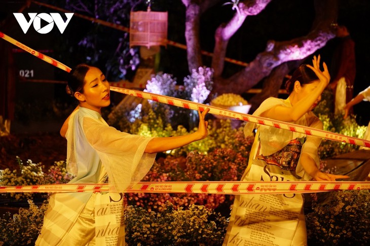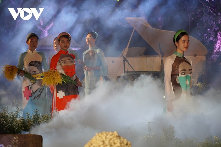 ![]() 방역 이야기도 쇼에서 독특한 아오자이 컬렉션 공연도 있다. |