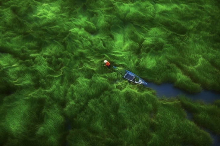 ![]() Pham Huy Trung 사진작가의 작품 "능률풀 수확"은 높은 사진(drone) 부문에서 1등상을 수상했다. |