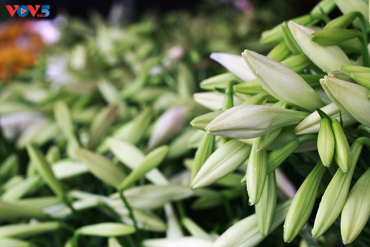 | 상인들을 통해 직판장에서 팔리는 백합꽃 |