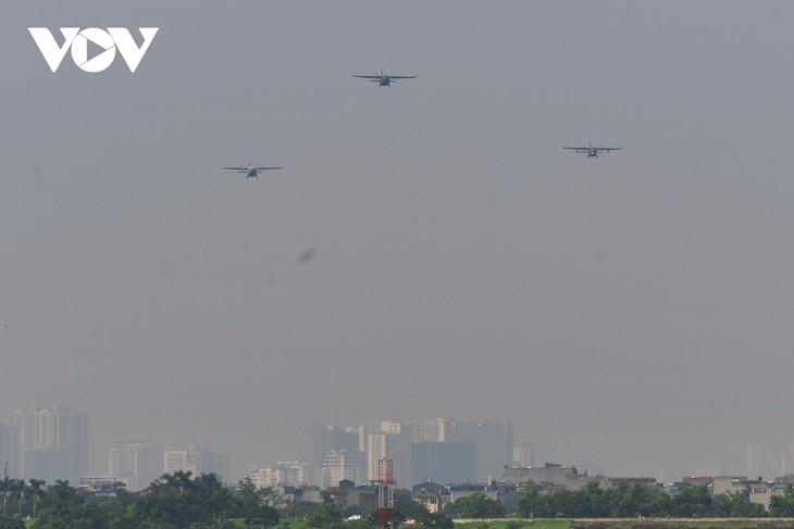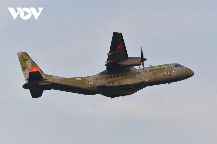 | 하노이 상공에서 화살촉 대형을 이루고 있는 C212 수송기 3대 |