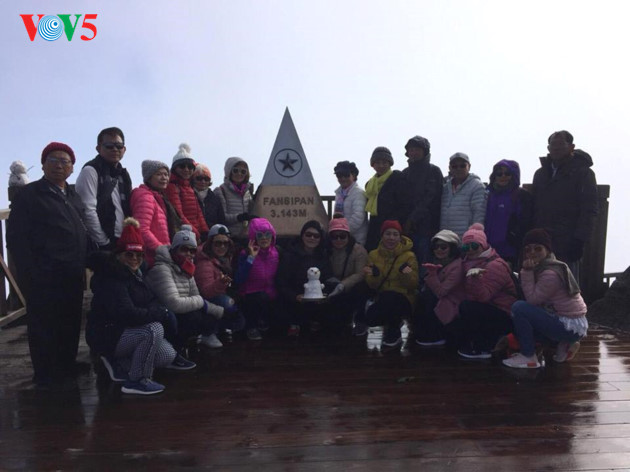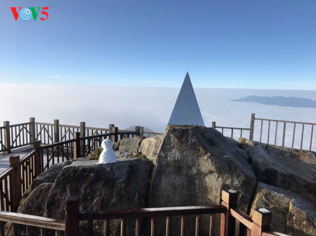 | 온도가 예보대로 유지되면 관광객들을 새벽 Fansipan정상에 신기한 결빙 현상을 계속 볼 수 있다. |