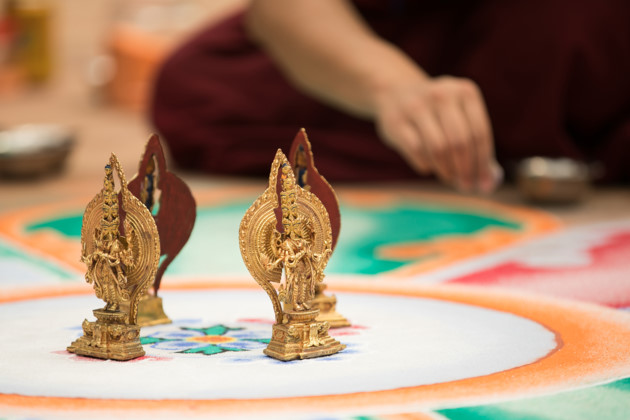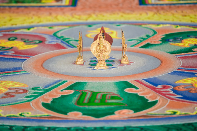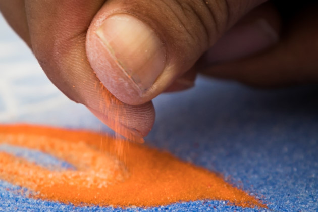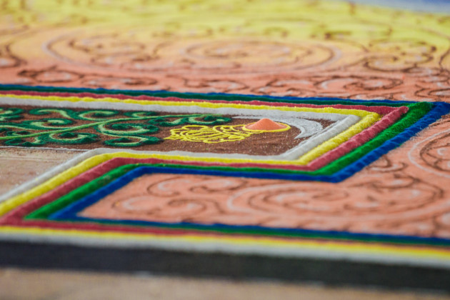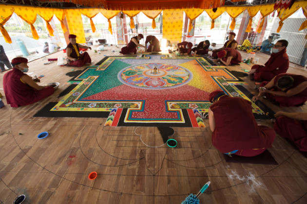 | 불교 금강승의 예술 형식중에서 모래 그림이 독창성 및 정밀도에서 선두를 달린다. |