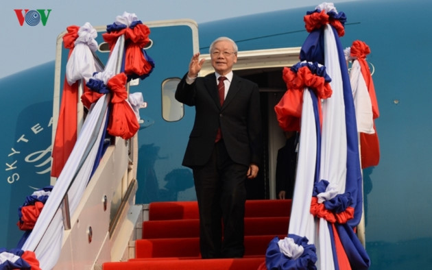 2월24일 오전 응우옌 푸 쫑 총서기장-국가주석과 베트남 고위급 대표단은 분낭 보라치트 (Bounnhang Vorachith) 라오스 총서기장-국가주석의 초청으로 수도 비엔타인의 왓따이 국제 공항에 도착하여 라오스 인민민주주의공화국에서 공식적인 우호 방문을 시작하였다.