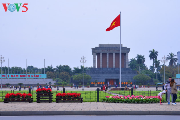 | 많은 화분, 나무가 하노이 바딘 광장에 배치되어 있다. |