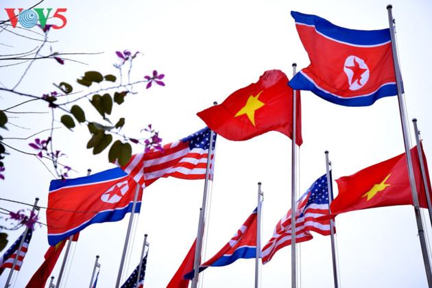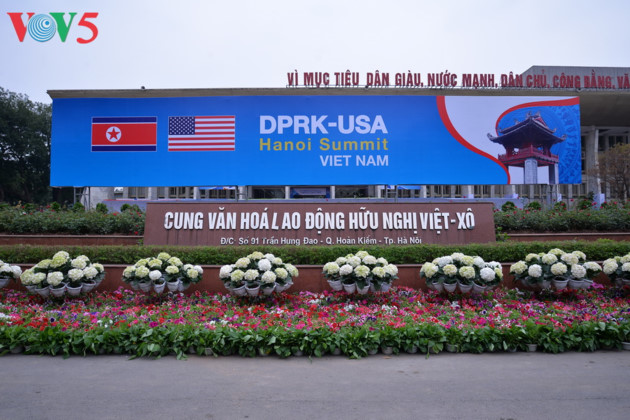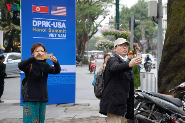 | 한국 관광객들은 2차 미국-조선 정상회의 준비 모습을 찍느라고 분주하다. <사진 : 쭝히에우/VOV.VN) |