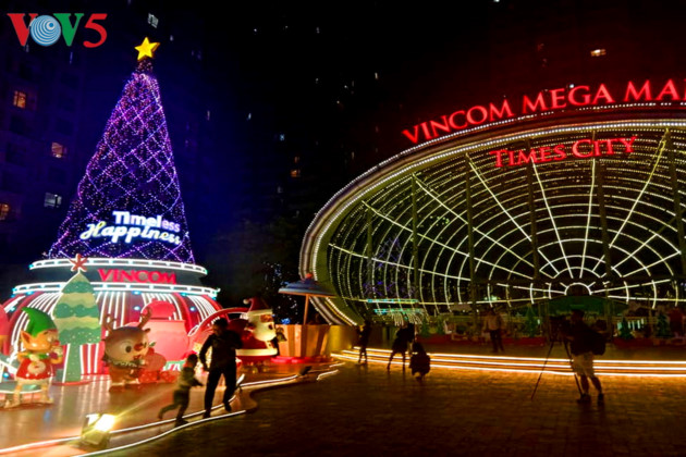 빈컴 등 대규모 백화점 크리스마스 장식 모형들이 많은 어린이의 눈길을 사로잡는다.