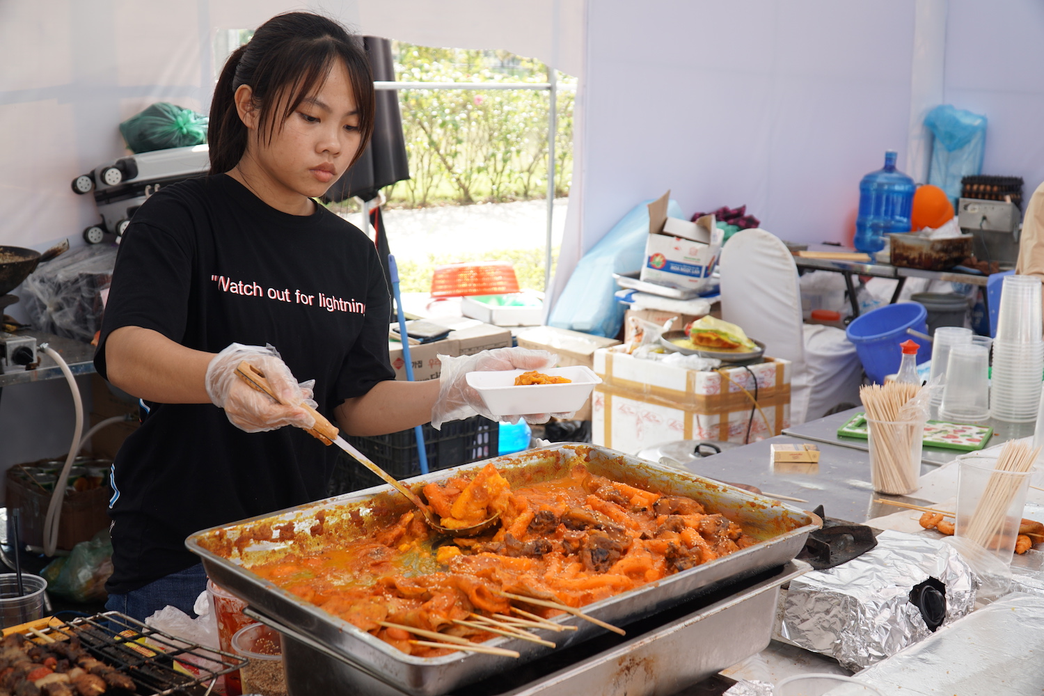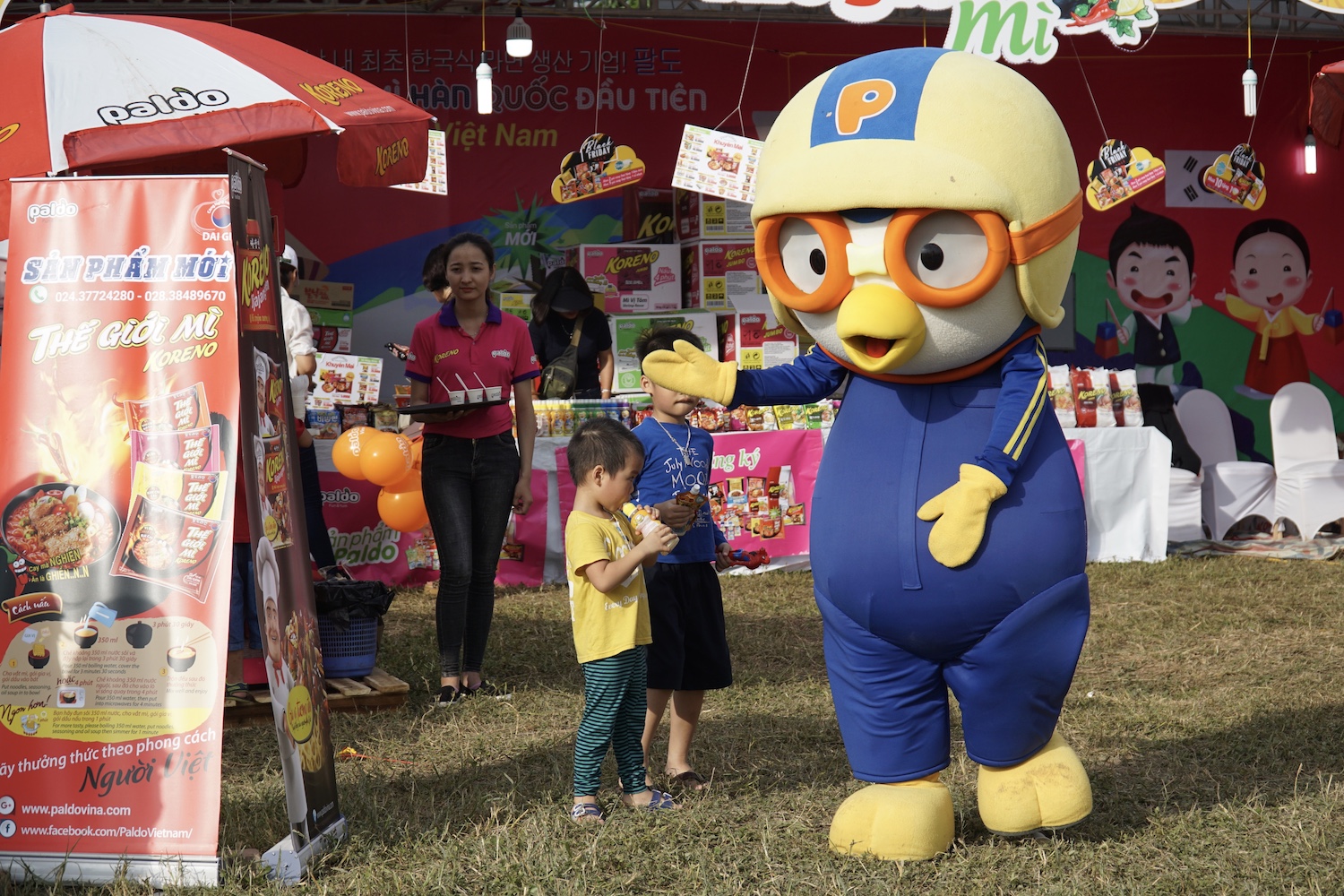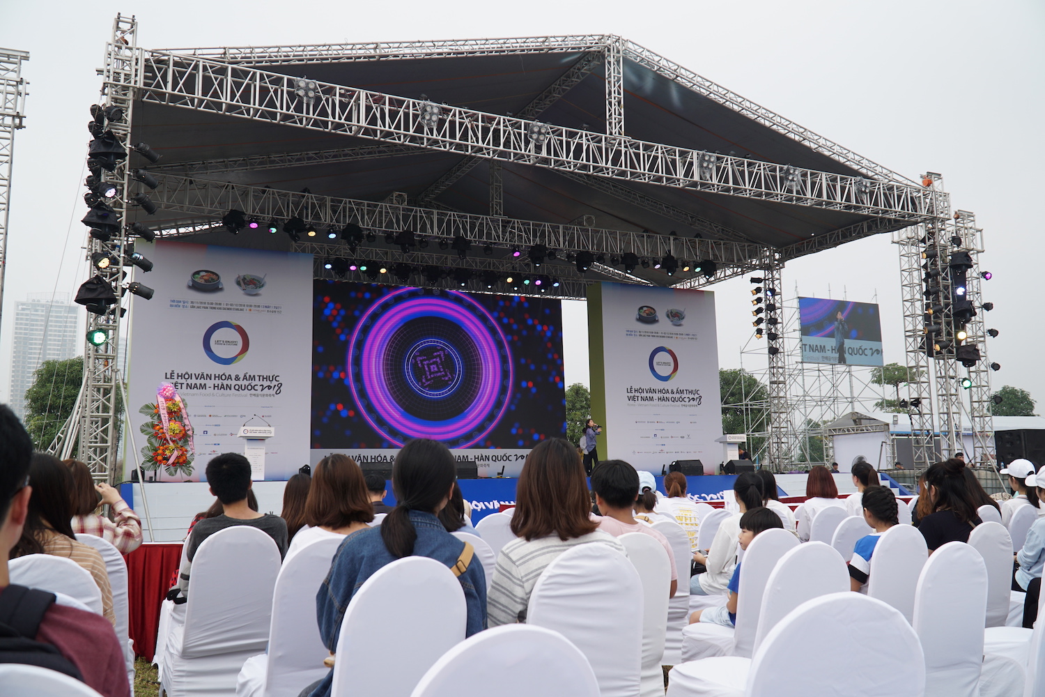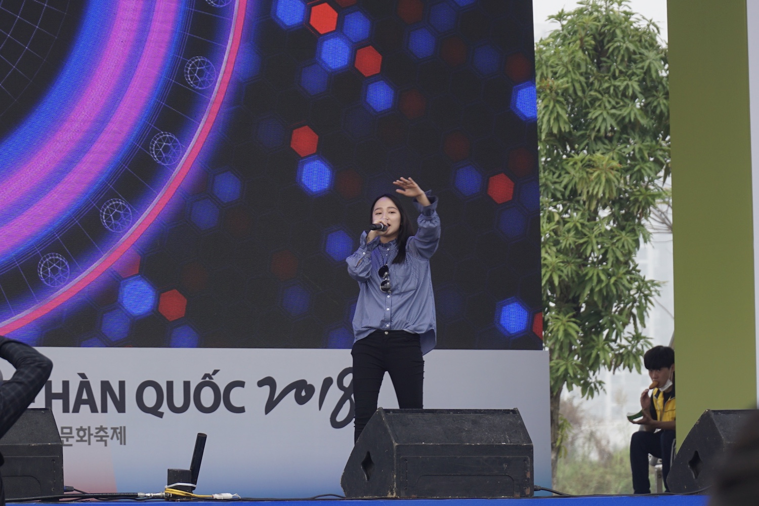 무대에서 한국 연예인들이 특색있는 공연을 제공합니다.